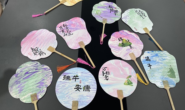 造价科的女职工们在印有“小荷尖尖”图案的扇面上写下“端午安康、茁壮成长”的字样,表示要把扇子送给孩子当做节日礼物;财务科组队完成了一把一面是青绿山水、一面是龙舟竞渡的“双面漆扇”,每个人脸上都露出了满意的神色……大家通过协作,不仅增强了团队意识,还发现了彼此的创意闪光点。